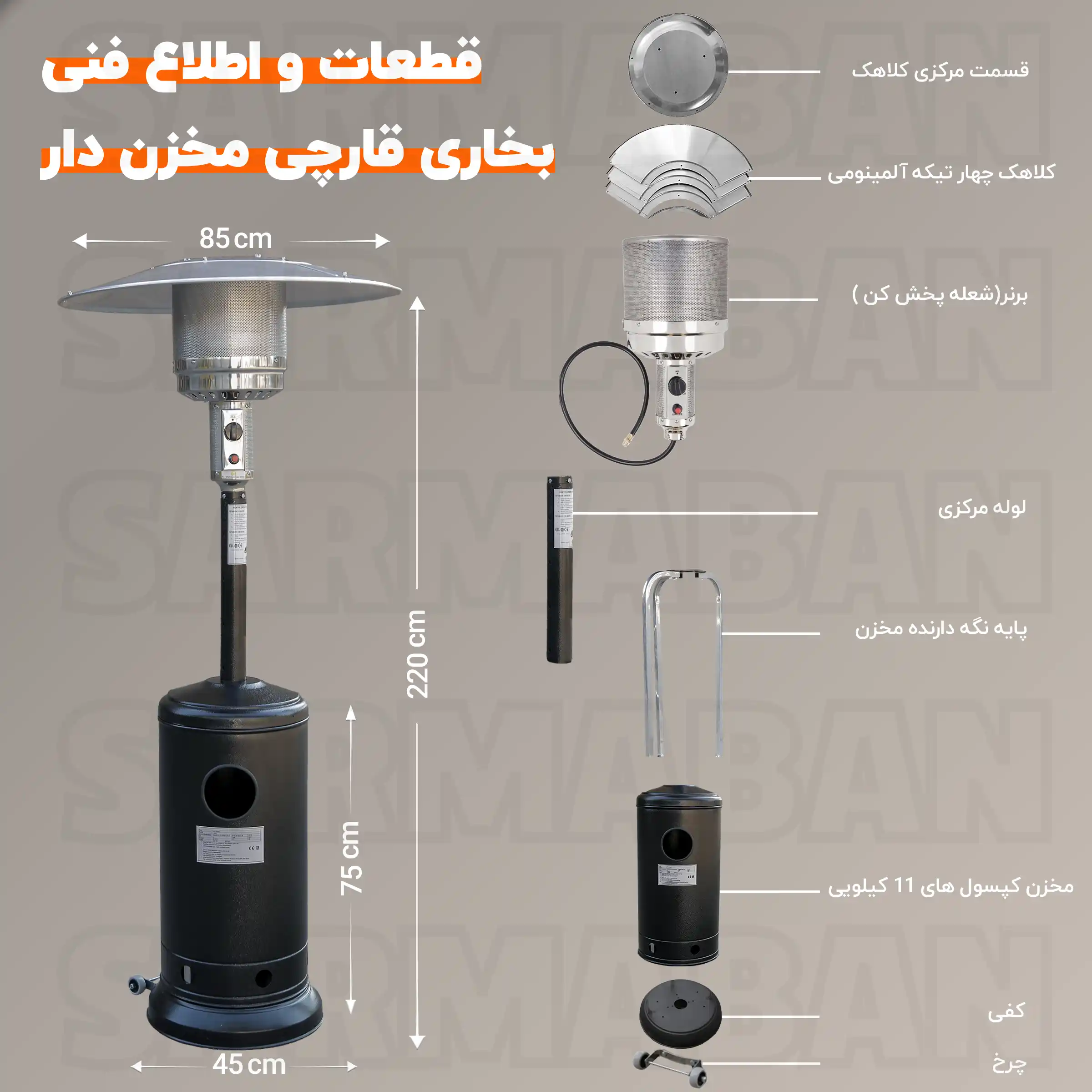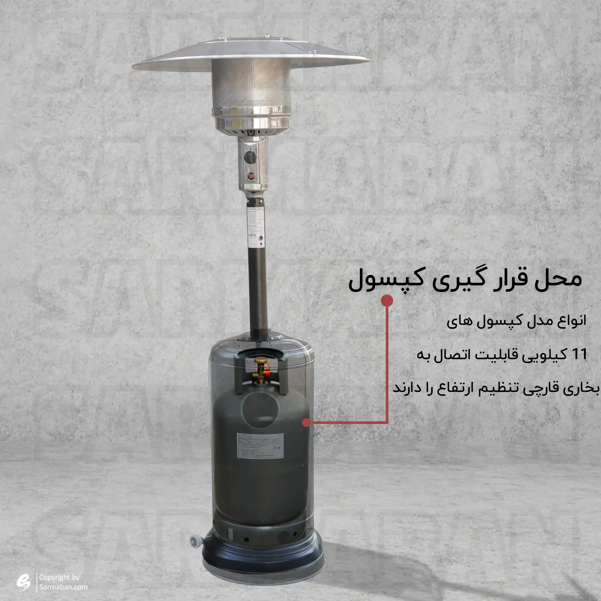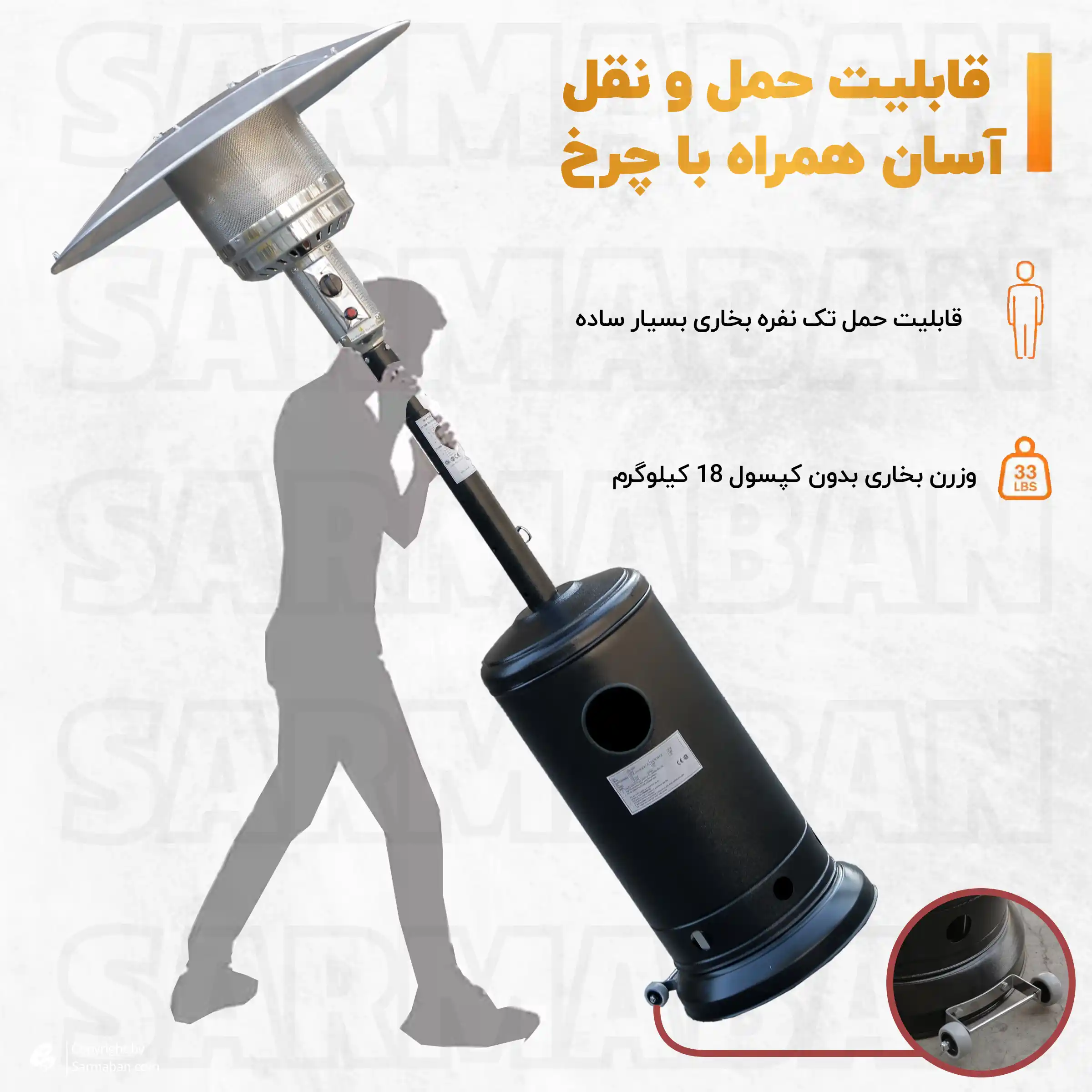 بخاری قارچی فضای باز محصولی مدرن و کاربردی با ظرفیت حرارتی بالا جهت گرم کردن فضاهای باز، تولید و عرضه شده است.همانطور که میدانید در فصل زمستان یکی از دغدغههای رستورانهای فضای باز، کافهدارها و ... گرم کردن فضای اطراف آلاچیقها، تراسها و روف گاردن ها است. نوع ابزار گرمایشی که برای اینگونه محیطها مورد استفاده قرار میگیرد، بسیار متفاوت از بخاریهای خانگی است؛ زیرا در آلاچیقها، تراسها و ... همانند خانه دیوارهای عایق وجود ندارد. از این رو به وسیلهای با ظرفیت حرارتی بالا نیاز است تا بتواند محیط را گرم نگه دارد. بخاری قارچی فضای باز شعبه کار محصولی است که علاوه بر ظاهری زیبا و شیک، ظرفیت حرارتی بسیار بالایی جهت گرم کردن فضای باز دارد.